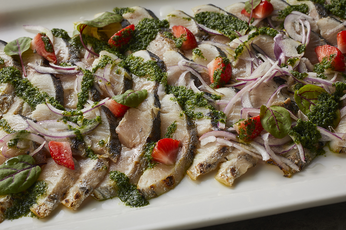 寒さわら炙りスモーク、いちご、サルサヴェルデ