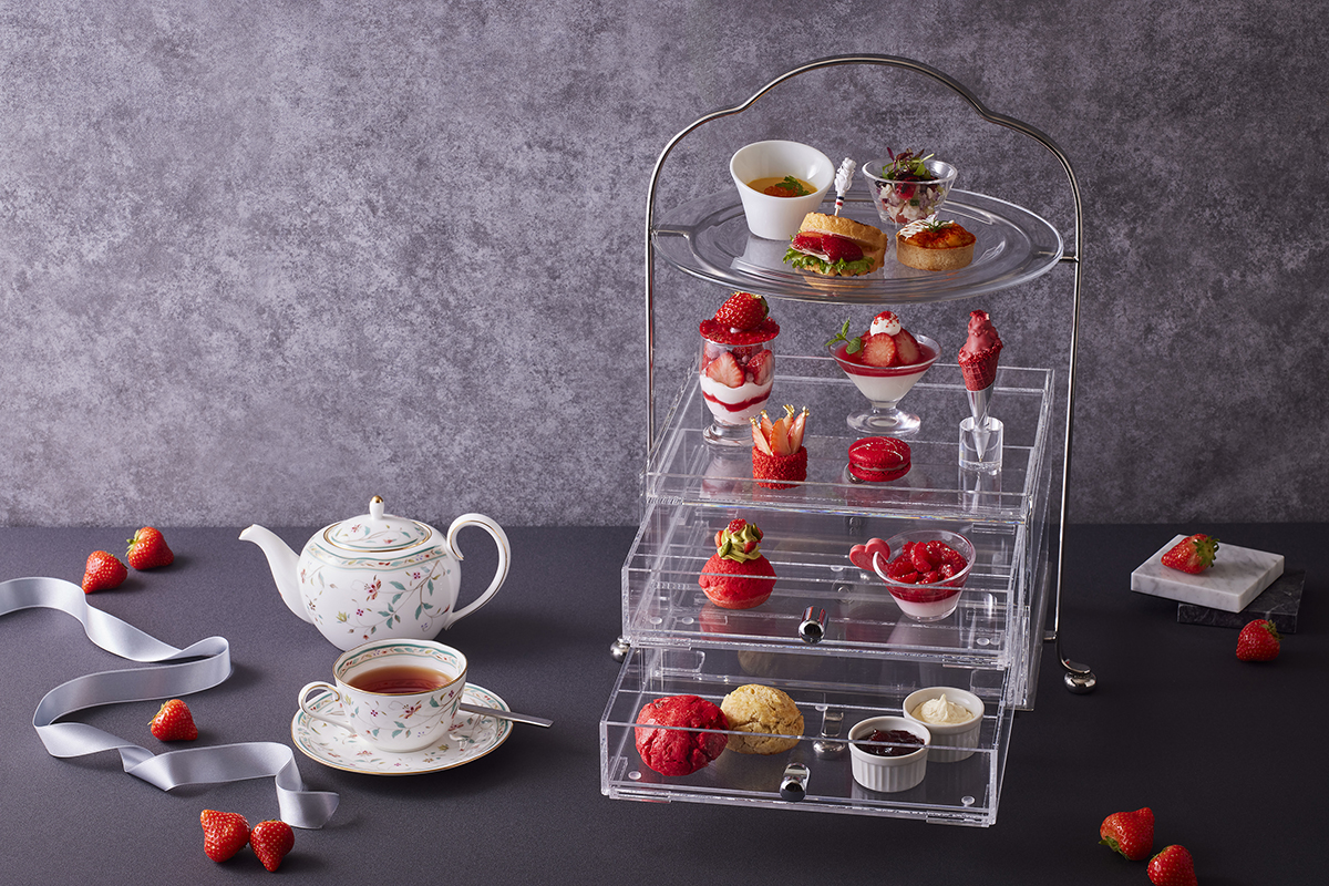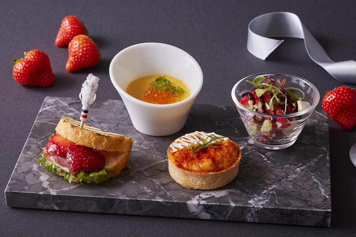 「ザ・ラウンジ」では旬のいちごを主役にした「クリムゾン ストロベリー アフタヌーンティー」を開催いたします。深みのある赤色が印象的なスイーツに、冬の食材を織り交ぜたセイヴォリーで、甘みや酸味、香ばしさなど多彩ないちごの表情を引き出しました。この季節ならではのいちごの魅力を楽しむアフタヌーンティーをご堪能ください。