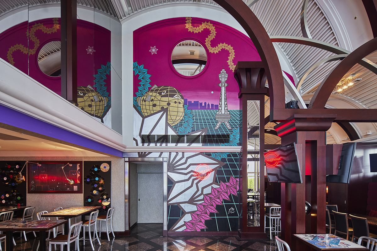 Every corner of the bar showcases distinctive wall artworks painted by renowned local and international artists, capturing Osaka’s warmth, unpretentious beauty, and living history. Explore each space and discover a celebration of the city’s timeless spirit.